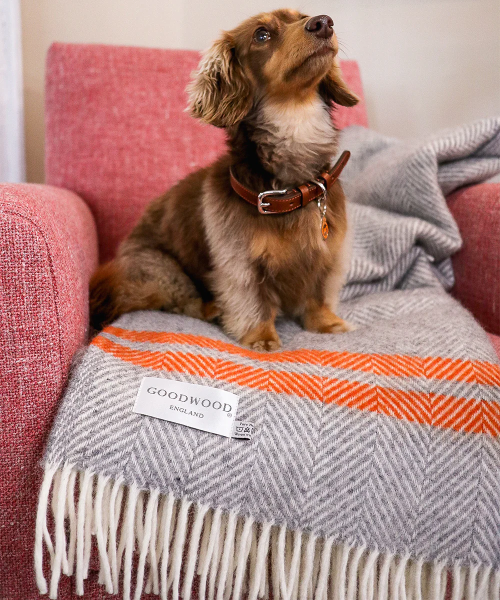 Made in the UK from 100% pure new wool. Using only the finest yarns, our Goodwoof throw is perfect to protect your car or sofa from muddy paws. You pooch will love to snuggle in our travel rug, ideal for keeping warm and cosy at home or on your travels.